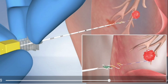 肺小结节在肺表面往往难以看到,术中通过手指触摸或者通过器械滑行定位病灶的成功率仅为30%左右。部分患者因无法准确定位而导致中转开胸,甚至手术失败。对于需要接受手术的患者,术前的准确定位对于病灶的精准切除十分重要。