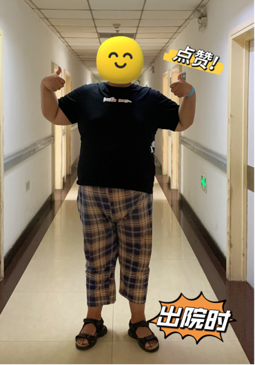 目前患者出院已有一周时间,通过术后随访得知其已由入院时的171kg降至162kg,成功减重18斤,相当于平均每天体重下降2.5斤!此后我们还将对其继续随访,指导其术后饮食的调整,科学减重,早日重拾健康。