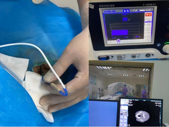 总院疼痛科医疗团队经过精细的术前准备,反复讨论优化环节,制定各种应急预案后于8月29日上午在我院PET-CT室引导技术支持下,利用CT精准定位, 历时1个小时成功为患者实施了舌咽神经脉冲射频靶向治疗。