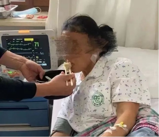 手术几个小时以后,看到患者大口大口吃馄饨,不再疼痛了,家属也露出了久违的笑容。