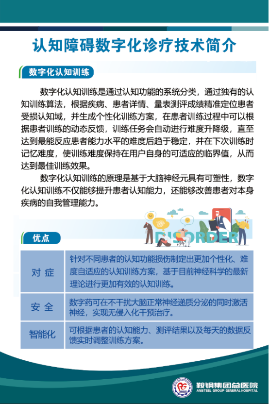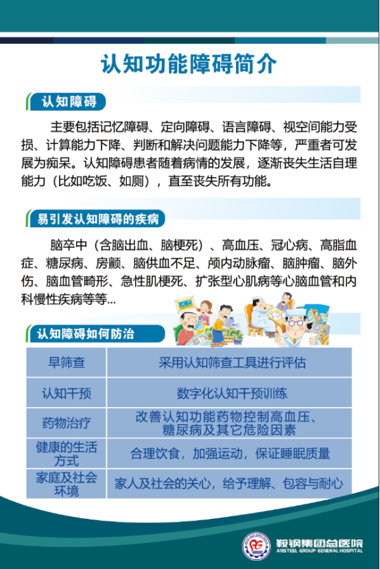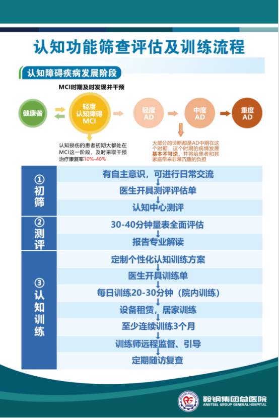 随着医院综合服务能力的大幅提升,特别是认知障碍患者的需求与日俱增,认知功能诊疗的需求越来越迫切。在国家《“健康中国2030”规划纲要》、《探索老年痴呆防治特色服务工作方案》的指导下,增强全社会的老年期痴呆预防意识,推动预防关口前移,提高预防知识水平,降低老年期痴呆患病率增速,提高老年人的健康水平,加强疾病诊治,完善老年医疗资源布局,增强医院科室建设,改善患者就医感受,在8月1日建军节这个重大的日子里,在医院各级领导的关怀和大力支持下,经过前期精心的筹备, 鞍钢集团公司总医院神经内科认知诊疗中心正式开诊!