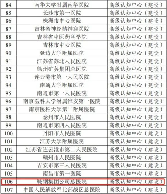 近日,国家卫生健康委能力建设和继续教育中心发布了《高级认知障碍诊疗中心和记忆障碍防治中心》遴选结果。全国共有406家单位入围,辽宁省共有7家单位被评为高级认知障碍诊疗中心(建设),有7家单位被评为记忆障碍防治中心(建设)。鞍钢集团公司总医院成为鞍山市唯一一家获批国家高级认知障碍诊疗中心(建设)单位。