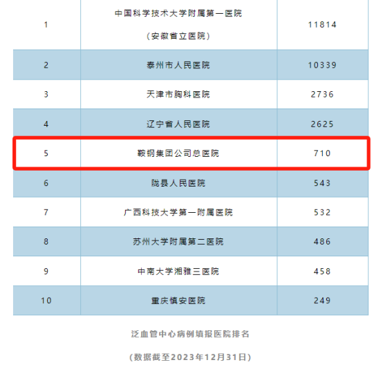 近日,泛血管疾病管理中心总部公布填报医院排名,目前全国泛血管疾病管理中心注册医院共241家,填报医院40家,我院填报数据位居全国第五,再创新高!