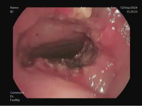 术中在麻醉科王雅捷主任、呼吸与危重症监护室(RICU)韩卓越主任的保驾下,沈明主任先对病变组织进行反复高频电圈套,使病灶减小,随之对病变部位进行冷冻治疗,通过冷冻技术将气道内的坏死组织一点点清除,术后解除主气道狭窄,患者气道阻塞症状明显改善,呼吸通畅,效果立竿见影,患者和家属都非常满意。