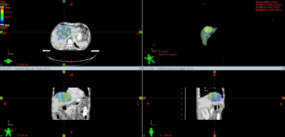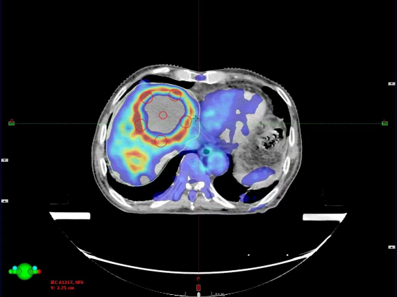 在治疗过程中,使用TrueBeam平台的精密计划系统,确保了每一剂量都能够精准作用于肿瘤病灶,同时最大限度地减少了对正常肝脏组织的损伤。从治疗计划到实施,整个流程保持高水平的精度和稳定性。