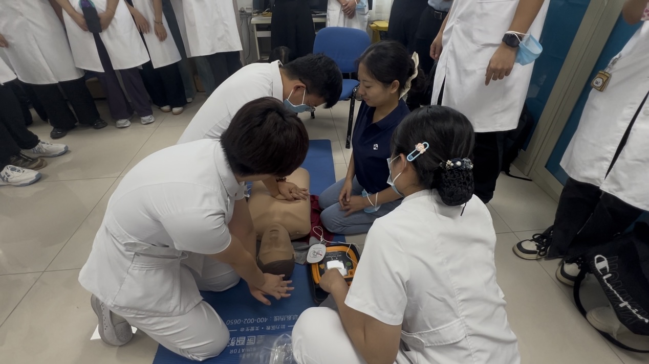 医务部、护理部精心选拔的专业教员,化身为知识的播种者,将AED、海姆立克急救法、心肺复苏法等应急技能倾囊相授。新员工们如同求知若渴的学子,在技能培训中心的实操舞台上,将理论转化为实践,每一次的操作,都是对生命敬畏的深刻诠释;每一滴汗水,都凝聚着守护生命的坚定决心。新员工不仅对医务人员的专业性有了最直观的体会,对医疗工作应急响应、分秒必争的重要性有了深刻认识。