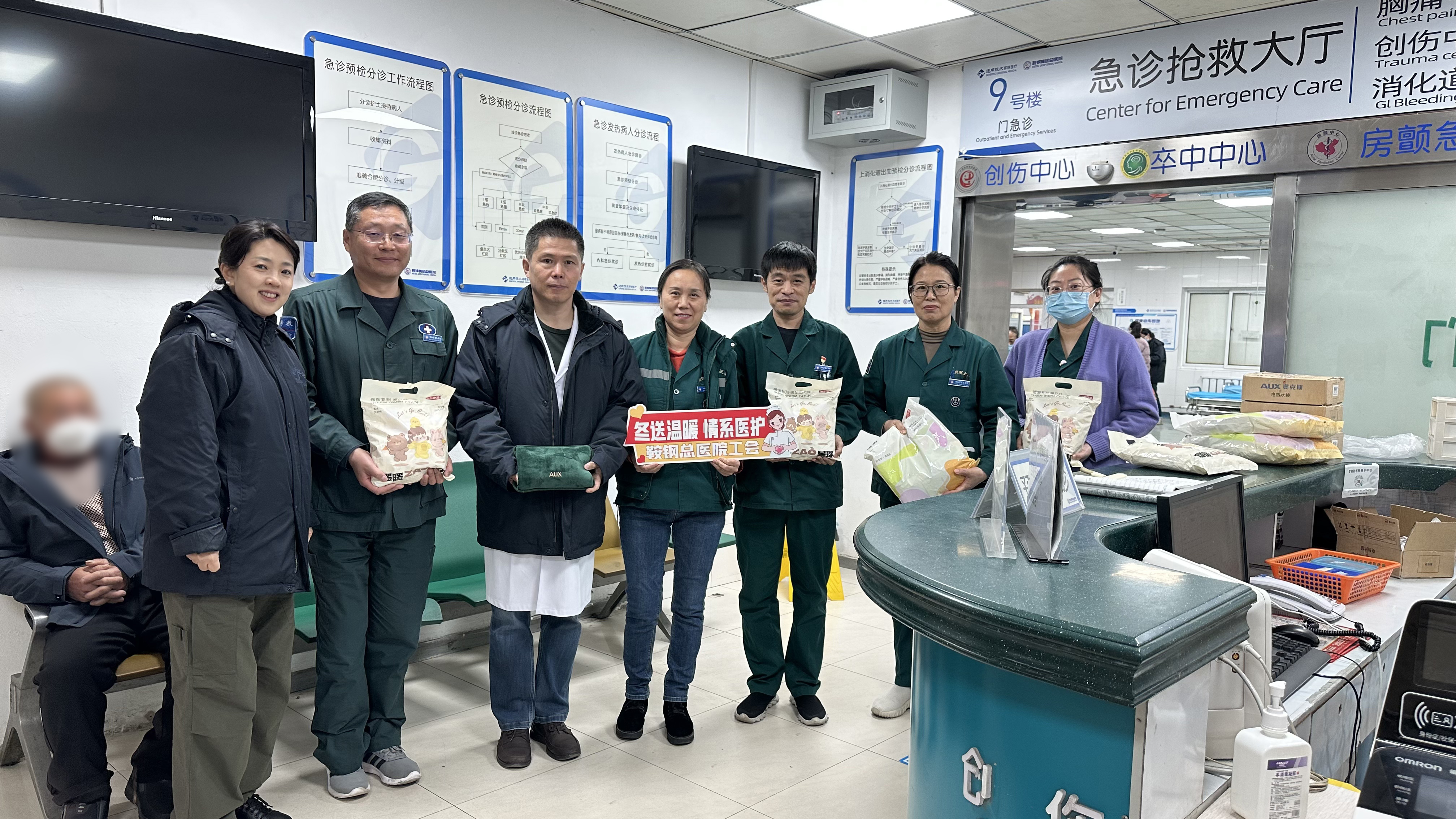 △护急诊于行途: 为急诊人员送上暖宝贴、热水袋及护膝