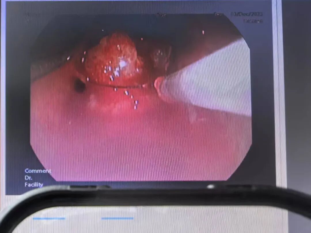 但在切除过程中,患者突发血氧饱和度与心率持续下降,气道涌出大量分泌物,生命体征急剧恶化!团队立即展开抢救,进行心肺复苏、药物支持,并紧急进行气管插管,关键时刻,在气管插管内使用电圈套器配合激光治疗切除肿瘤,随着肿瘤切除一部分,又重新更换硬质气管镜进行肿瘤铲切,气道恢复通畅,患者潮气量上升,血氧与心率逐步回升,危机得以解除。随后,团队又对残余肿瘤进行精准激光消融,彻底疏通了生命气道。