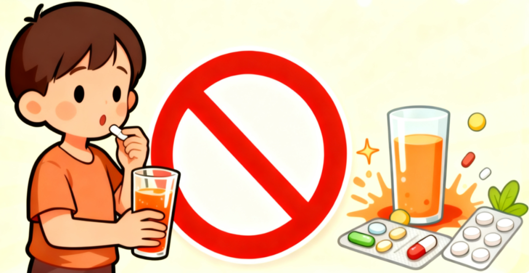 为了让宝宝乖乖吃药,很多家长会加糖或者用果汁送药。殊不知果汁中的酸性物质会和碱性药物中和,使药效降低。而糖会抑制某些药物疗效,干扰矿物质和维生素吸收,甚至与某些中药成分反应生成有害物质。