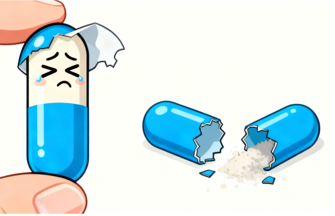 药品的包衣就像防护服,防止内容药对胃产生刺激或被胃液分解破坏。如果剥去这层保护衣,药效会降低,甚至使药物快速崩解而到达中毒量危及生命。