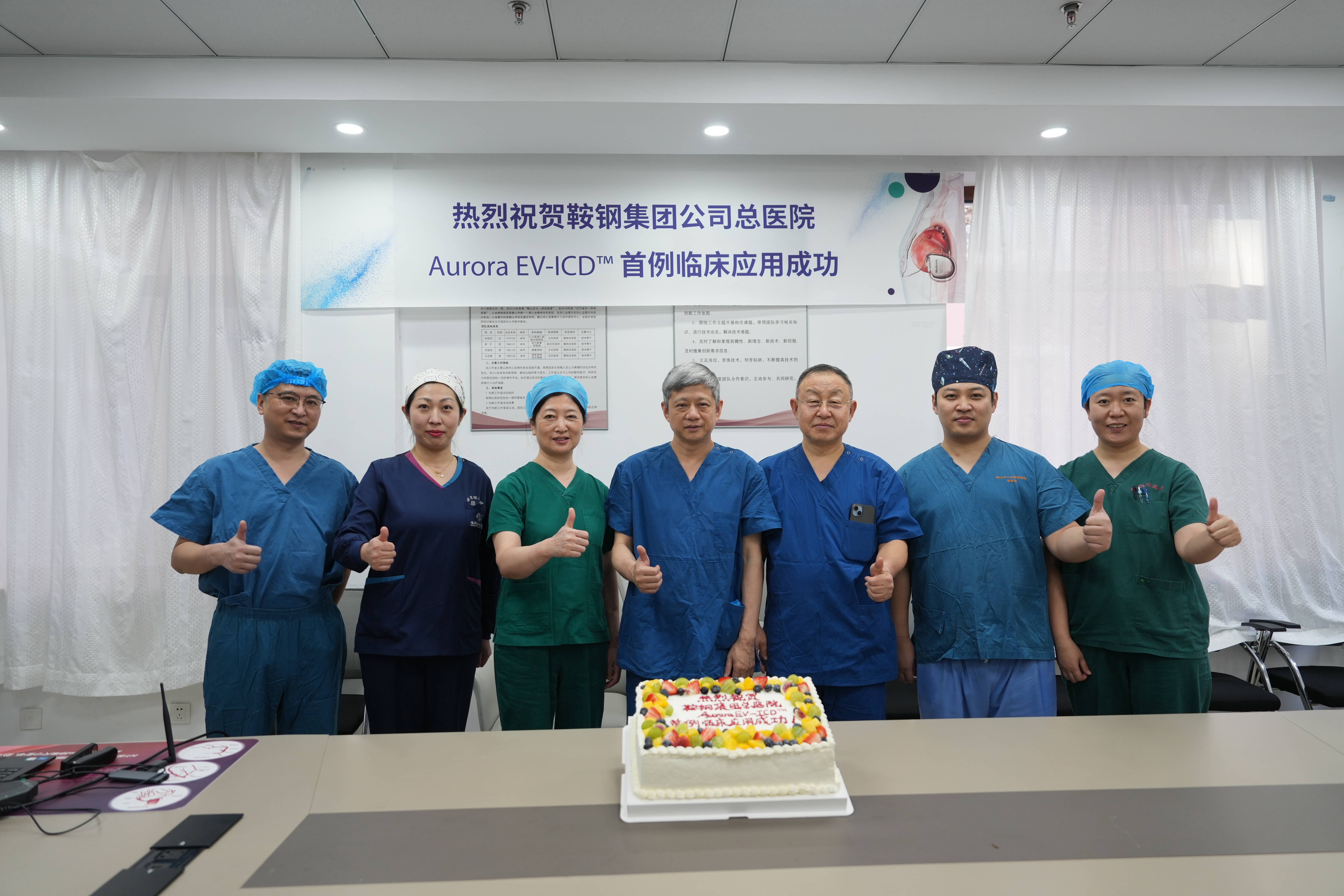 在外部专家上海交通大学附属同仁医院邱朝辉教授与中国医科大学附属一院于波教授及我院心脏起搏团队(心内科刘丽宏主任、罗超医生、心外科周钰峰主任等)的通力合作下,EV-ICD植入手术顺利完成。