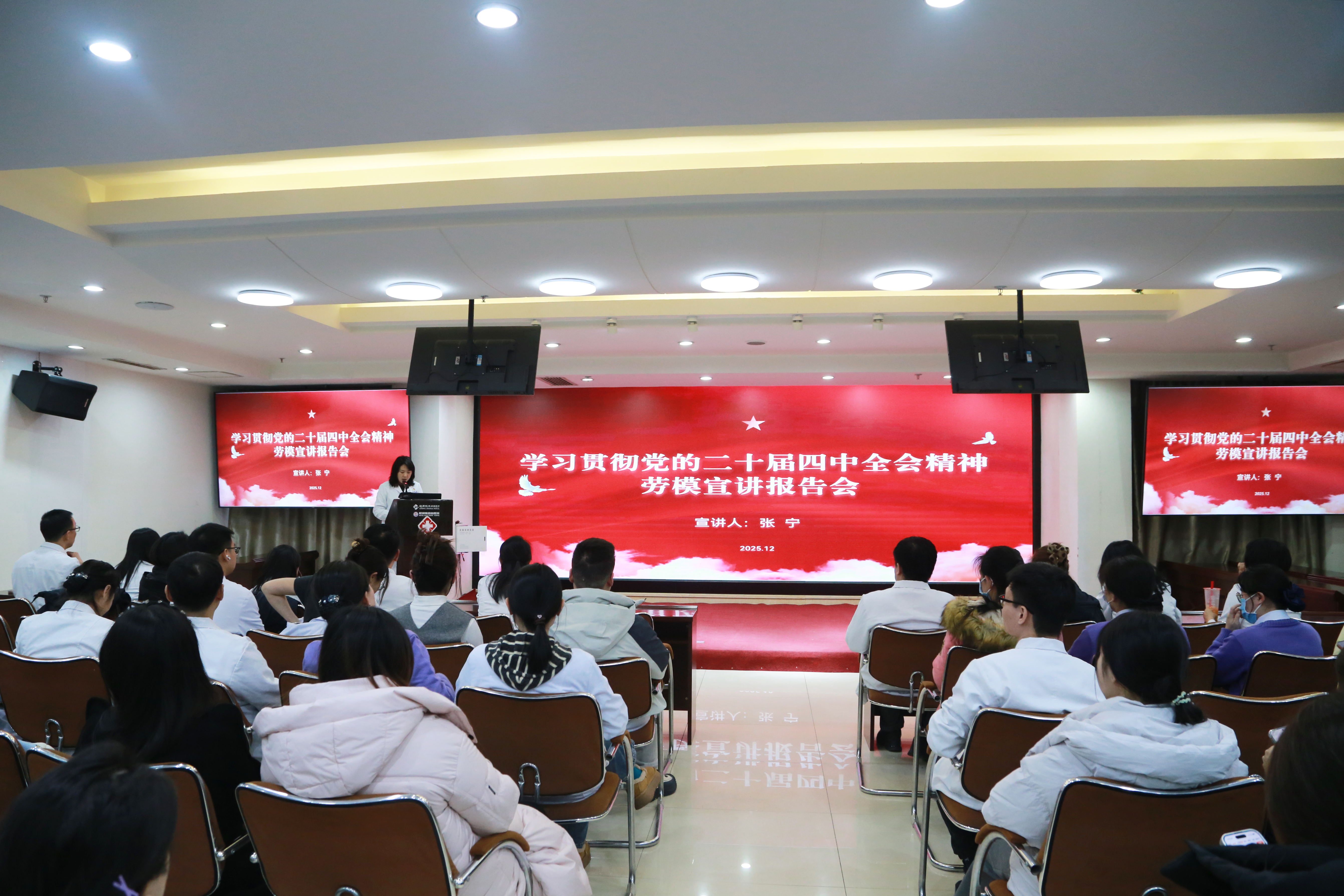宣讲中,张宁同志以鲜活的事例、质朴的语言,分享了自己在医疗一线坚守初心、精益求精的奋斗历程,阐述了如何在平凡岗位上贯彻落实全会精神,践行医者使命与劳模担当。报告既有理论高度,又贴近工作实际,引发了与会人员的强烈共鸣。