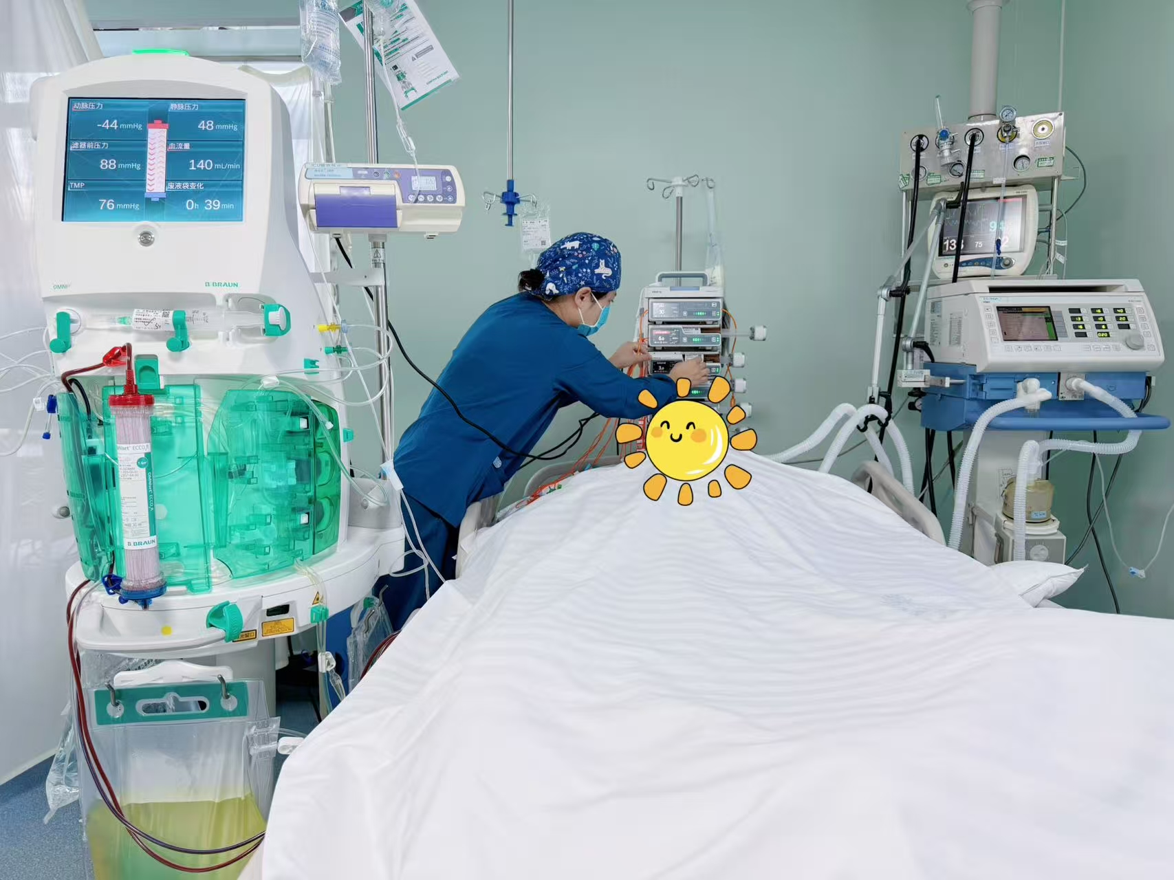 52个日夜,是煎熬更是坚守。医护人员像守护初生婴儿般,记录每一次呼吸、调整每一滴药液,用温暖的话语安抚患者焦躁的情绪,用专业的操作化解一次次危机。呼吸机的规律运转声、CRRT的嗡鸣音,成了病房里最动人的生命节拍。