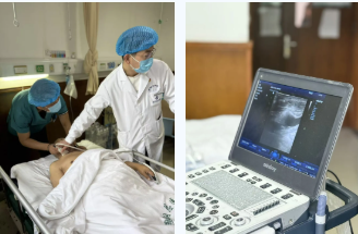 “床旁操作缺乏手术室的全方位设备支持,空间也受限,但对操作精度的要求丝毫不能降低。”周闯主任介绍。超声医学科杜刚主任团队为手术提供了实时、清晰的影像导航,确保了穿刺路径的精确与安全。