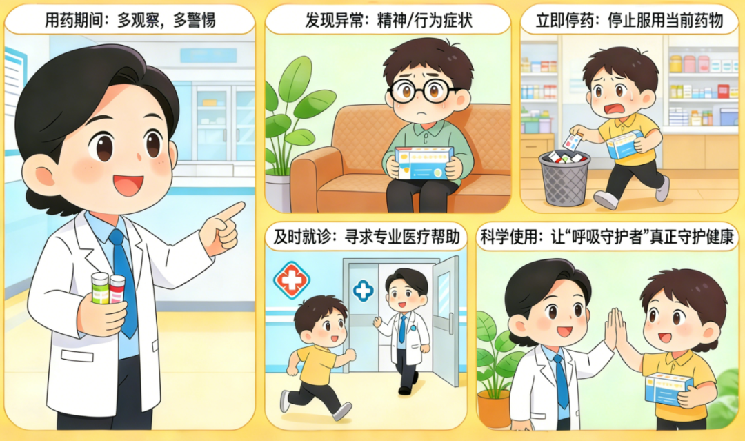 在用药期间,请多一分观察,多一分警惕。一旦发现有异常的精神或行为症状,立即停药并及时就诊。科学认知,合理使用,才能让这位“呼吸守护者”真正守护健康,避免不必要的风险。