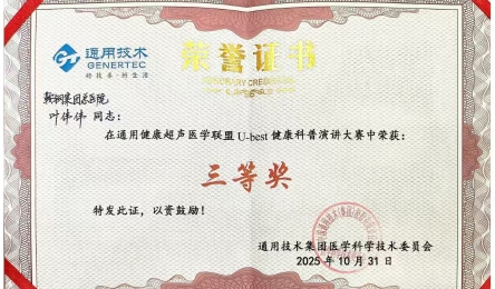 鞍钢总医院叶伟伟医生在通用健康全国超声医学联盟首届科普大赛中荣获佳...