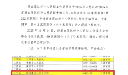 鞍钢总医院高血压达标中心成功通过2025年度再认证!